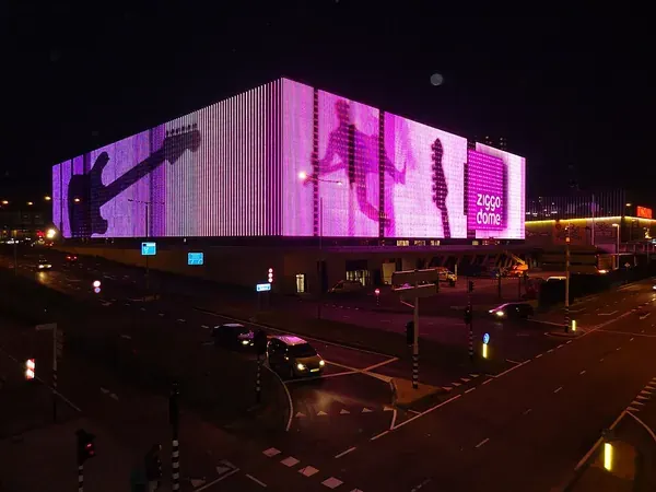 The building's facade, equipped with thousands of LED lights, allows for dynamic, customizable exteriors, contributing to its iconic presence in the city. The Ziggo Dome's interior is designed to accommodate large crowds while ensuring optimal sightlines and sound quality, making it a premier destination for major events and performances.