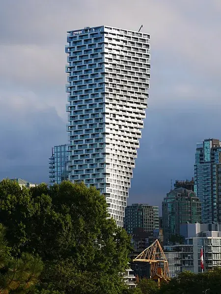 Dominating the entrance to downtown, Vancouver House by BIG architects is a breathtaking addition to the city's skyline. This instantly recognizable twisting skyscraper is a masterpiece of architectural ingenuity, born from a challenging triangular site constrained by the Granville Street Bridge.