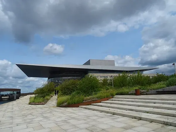 Standing as the centerpiece of the Musicon creative district, this architectural icon serves as a dynamic hub for Danish youth culture. The building is instantly recognizable by its spectacular gold-studded facade and dramatic cantilevered structure, which floats above the entrance like a rock star taking the stage.