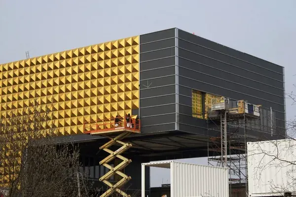 Standing as the centerpiece of the Musicon creative district, this architectural icon serves as a dynamic hub for Danish youth culture. The building is instantly recognizable by its spectacular gold-studded facade and dramatic cantilevered structure, which floats above the entrance like a rock star taking the stage.