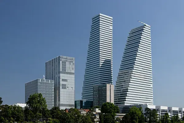 This skyscraper, primarily used as office space for Roche, a pharmaceutical giant, is characterized by its sleek, tapered design, offering panoramic views of the city and the Rhine. Tower 2, completed in 2022, further complements this architectural ensemble, reaching an impressive height of 205 meters.
