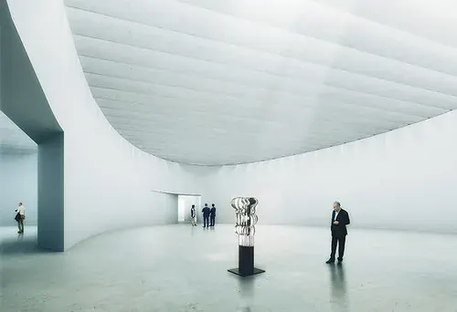 Every space crafted is humancentric, aimed at elevating the human experience through art and nature. Light flows freely throughout the structure, blurring the line between indoor galleries and the serene outdoors.