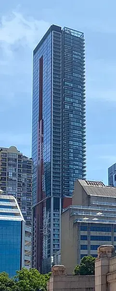 The tower creates a unique micro-climate through its signature "Sydney Balconies"—hermetically sealed glass verandas that act as a protective environmental skin. These indoor-outdoor spaces allow for natural ventilation while shielding residents from high-altitude winds and noise, drastically lowering reliance on artificial climate control.