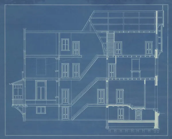 A blueprint machine produces copies of these drawings.