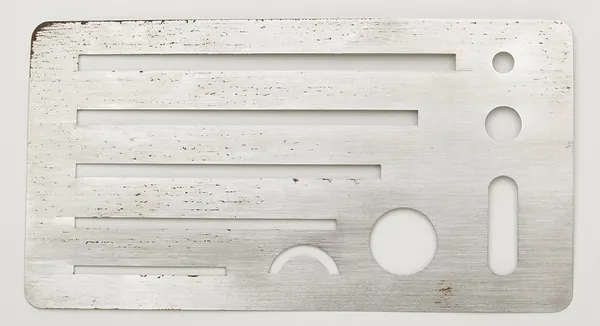 It’s a thin sheet of steel that has differently-shaped holes and patterns, allowing you to erase the thinnest lines and details, without touching other symbols or marks that are close-by.
