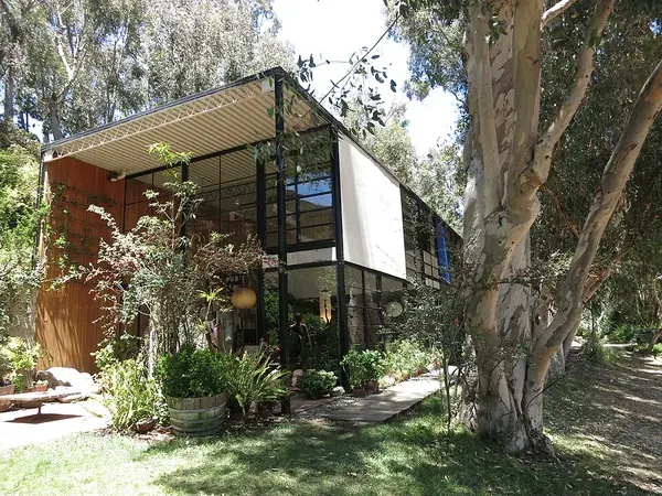 Moving from the Farnsworth House, another icon in mid-century modern architecture is the Eames House. Nestled in Pacific Palisades, this house stands as a classic example of residential design that emerged after World War II.