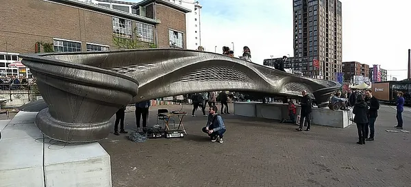 The MX3D Bridge is a bridge in Amsterdam, The Netherlands, made fully by robotic 3D printing tech. This shows the big changes robots can bring to architecture. The use of robots helps architects with their designs.