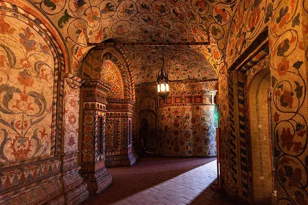 Floral ornaments add color and life to Russian architecture. These bright patterns are a key part of the design. Often, you find them inside buildings. They help make Russian art unique and rich with detail.