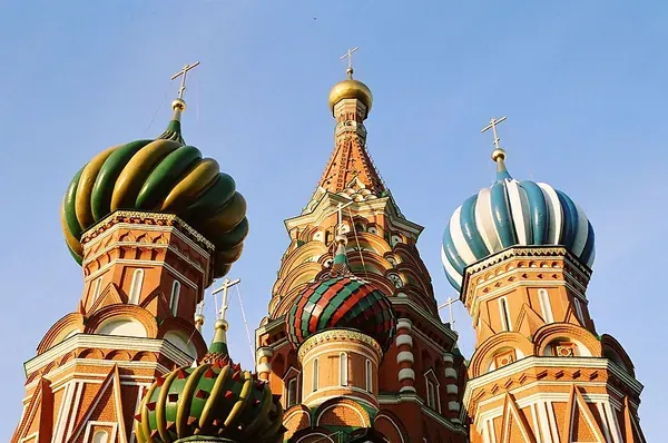 St. Basil's Cathedral is a thrilling sight in Russian architecture. Built in Moscow, it shines with its bright colors and unique design. It took ideas from Jerusalem for the look of the building.