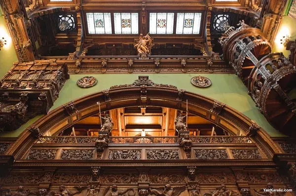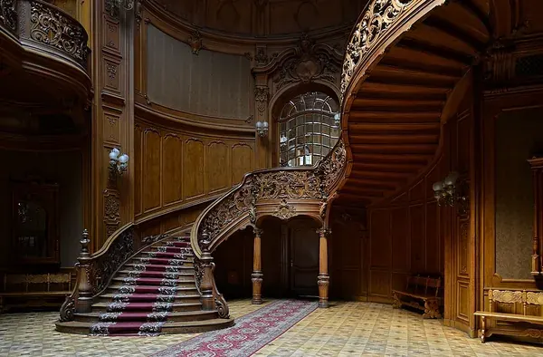 The red carpet and the green color not only adds another element of elegance, but it also pairs well with the kinds of dark woods and metal tones of the detailing.The most noticeable of these Steampunk building elements being the Turrets and arched tall windows.The most interesting part of the Steampunk building style is its reimagining of the uses these building elements can have. Often these building elements can be incorporated into vehicles, ships, treehouses, bridges, interior design, and lighting design.