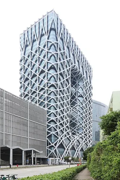 This project is the first building in Asia without using a singular internal column, with its structure heavily reliant on its amorphous curved exoskeleton, allowing for a more open and unobstructed floor plan.